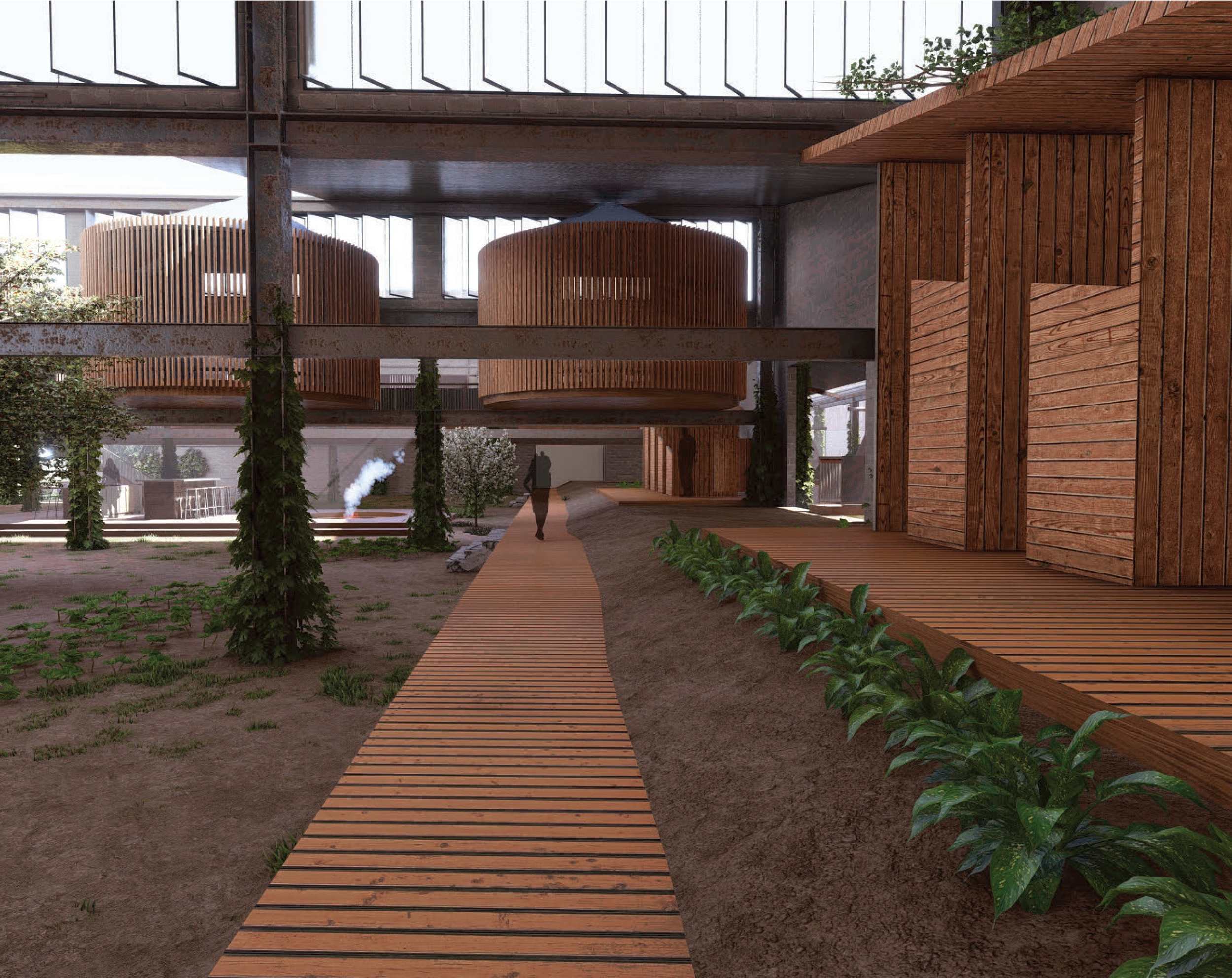 The Candoro Marble Company warehouse complex in Vestal, Tennessee serves as a case study for understanding and exploring the potential future life of industrial ruins. This project makes every effort to honor the time value associated with the natural and intentional decay of the building by prioritizing the reuse of found materials and implementing, wherever possible, natural systems.